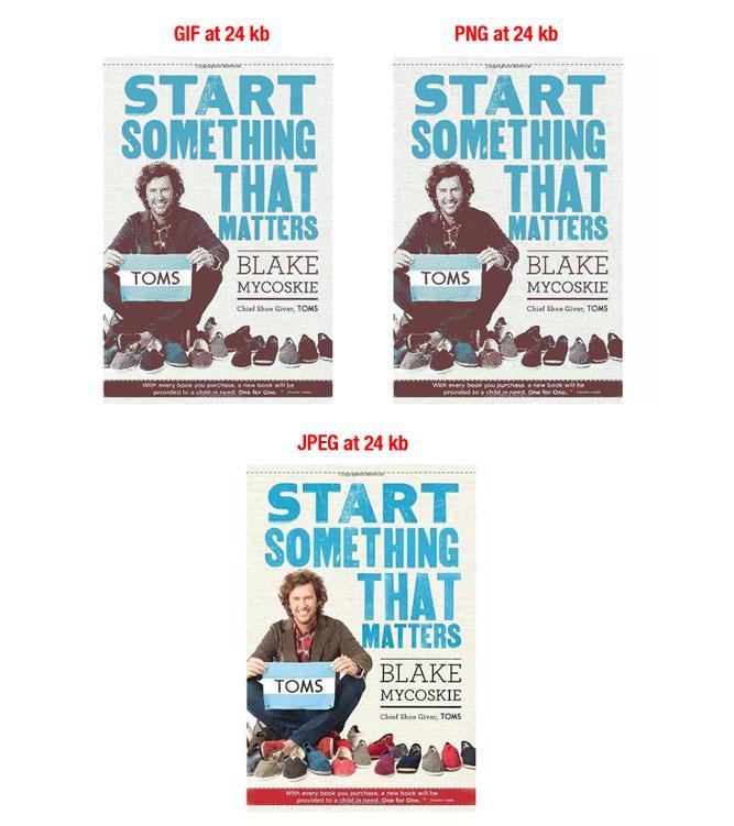 Dưới đây là cách hình ảnh sẽ hiển thị khi kích thước tệp hình ảnh đã được giữ cố định ở mức 24 kilobyte cho cả ba loại tệp: