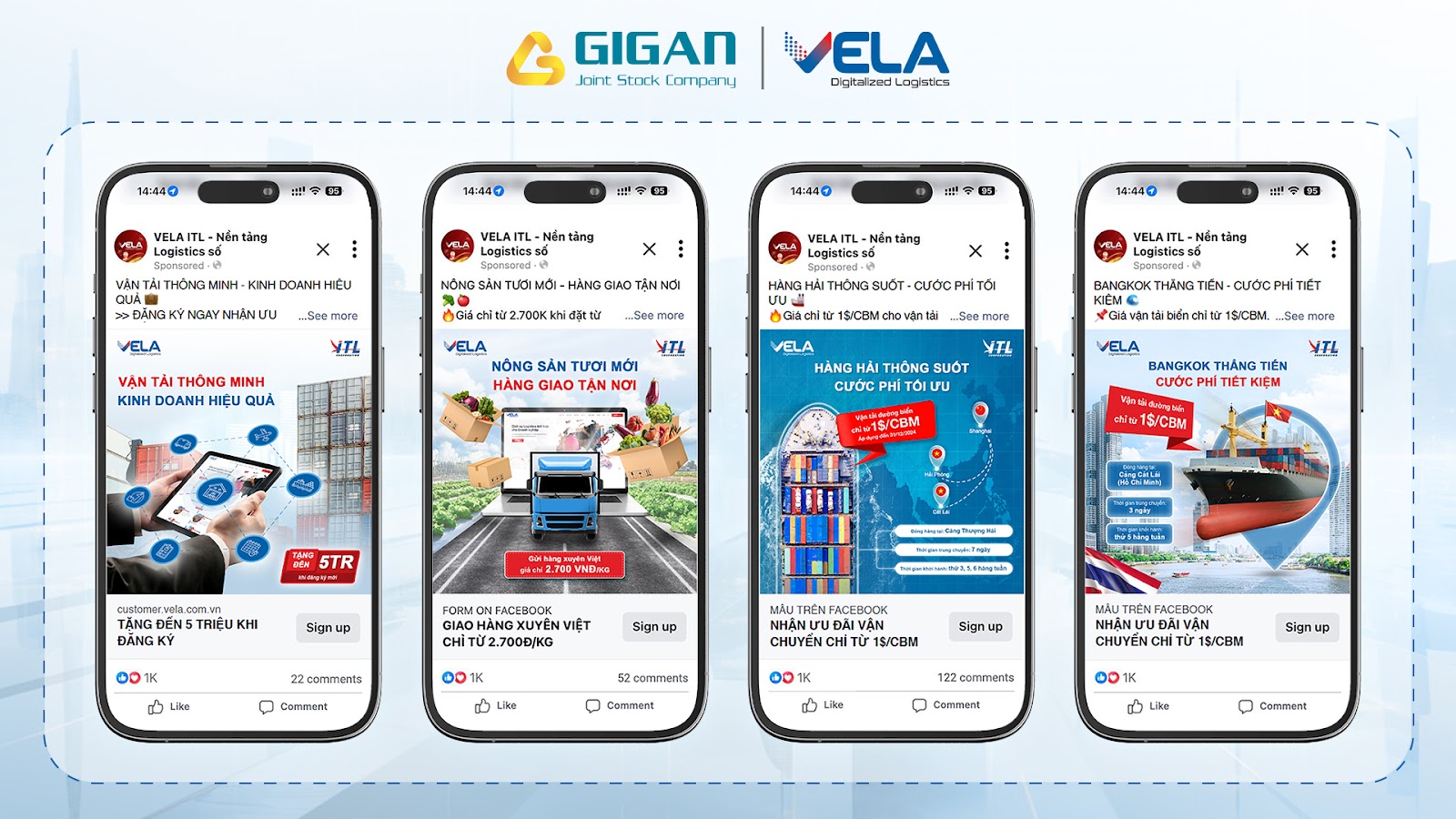 Tối ưu phù hợp: Trong quá trình triển khai, với phát hiện kênh quảng cáo Google chưa thực sự đạt hiệu quả như kỳ vọng. Do đó, GIGAN JSC đã linh hoạt đề xuất với đối tác VELA về việc chuyển một phần ngân sách từ Google sang Facebook để tối ưu và đạt hiệu quả tốt hơn. Chưa dừng lại ở đó, nhận biết thời điểm quý 4 cuối năm, nhu cầu thương mại và vận tải tăng cao, GIGAN JSC đã điều chỉnh từ khóa cho phù hợp với nhu cầu giao nhận cuối năm đối với các ngành hàng như: bánh kẹo, quần áo, thực phẩm, đồ trang trí Tết, Noel… nhằm đáp ứng nhu cầu yếu tố mùa vụ cũng như phù hợp với mối quan tâm của đối tượng tiếp nhận quảng cáo.
