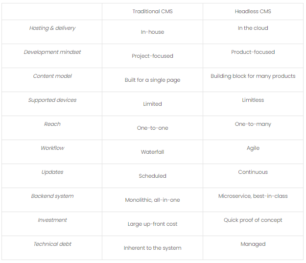 Khi các nền tảng kỹ thuật số được phát triển, nhu cầu về các giải pháp mang tính linh hoạt hơn dần xuất hiện. Ngày nay các doanh nghiệp phát triển websites, mobile sites, apps, conversational interfaces và hơn thế nữa. Trong khi đó, traditional CMS không theo kịp tốc độ. Tại sao vậy? Bởi vì một CMS tổ chức nội dung theo khuôn khổ hướng trang web, điều này khiến cùng một nội dung không thể thích ứng với các nền tảng kỹ thuật số khác. Từ đó khái niệm Headless CMS ra đời.