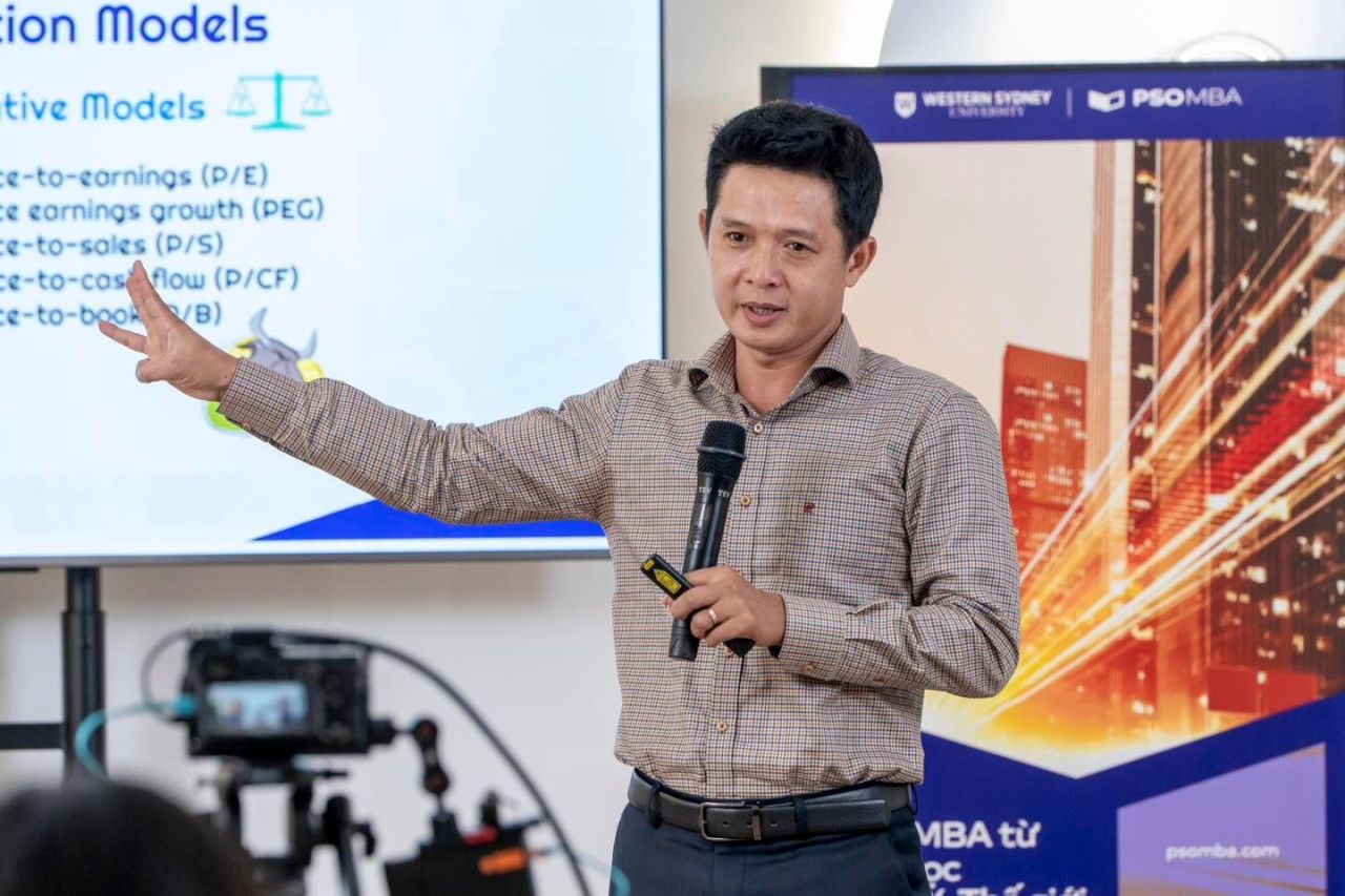 1. Định giá tương đối (Relative Valuation): Để minh họa cho mô hình định giá tương đối, ông Tài nêu ví dụ về một người muốn mua lại một doanh nghiệp trong lĩnh vực FMCG. Bên mua muốn so sánh giá trị của doanh nghiệp này với các doanh nghiệp tương tự trên thị trường để đánh giá xem mức giá này cao hơn hay thấp hơn so với giá trị thị trường chung.