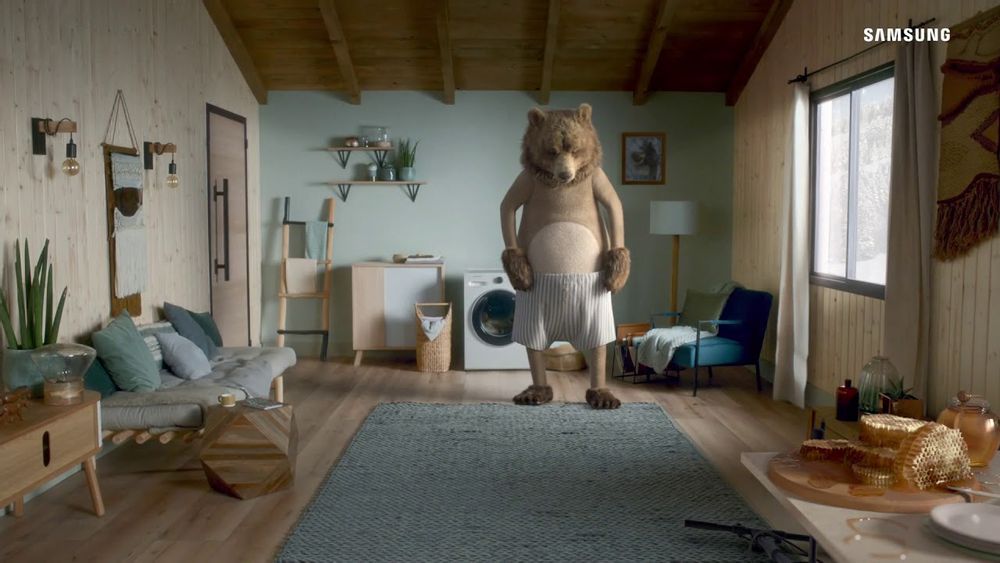 Vào tháng 1/2013, Samsung đã tung ra một TVC được dựng như một cuốn phim tài liệu ngắn về loài gấu hoang dã làm sạch bộ lông của nó… với máy giặt Samsung Ecobubble. Phân cảnh đầu tiên của TVC cho thấy một đoàn làm phim đã đến Manning Park (Canada) vào mùa đông để quay quảng cáo cho dòng máy giặt. TVC thậm chí còn ghi chú lại địa điểm quay, thời gian quay và dòng mô tả “Một con gấu khổng lồ đã xuất hiện bất ngờ tại buổi ghi hình cho Ecobubble“ ngay phân cảnh đầu tiên, khiến TVC trông có vẻ như một cuốn phim tài liệu thực sự.