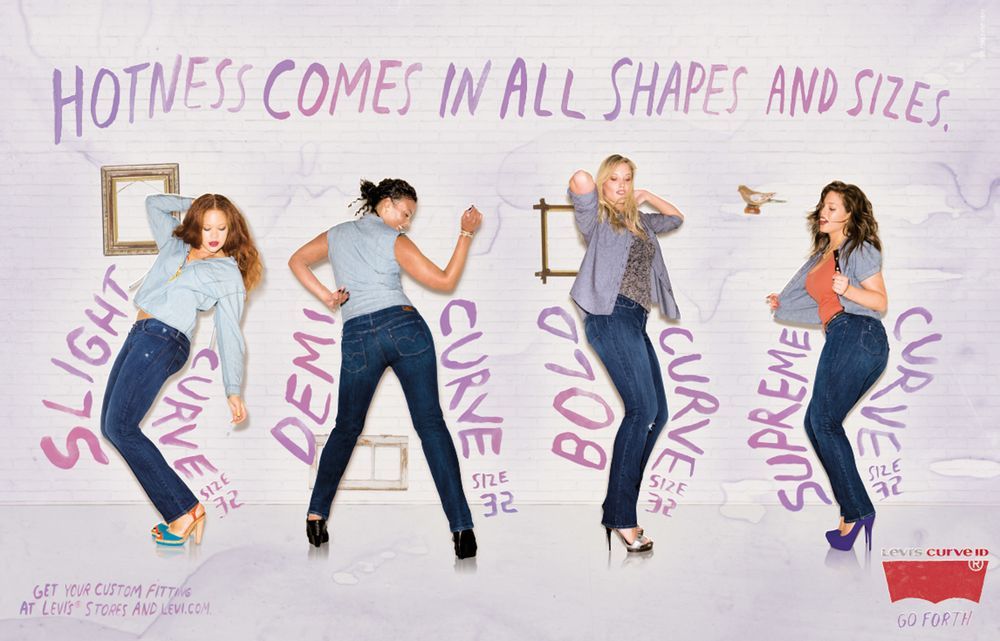 Levi's là thương hiệu thời trang nổi tiếng với những sản phẩm quần jeans bó sát và được quảng bá là tôn lên hiệu quả vẻ đẹp đường nét cơ thể của con người, dù ở bất kể hình dáng nào.