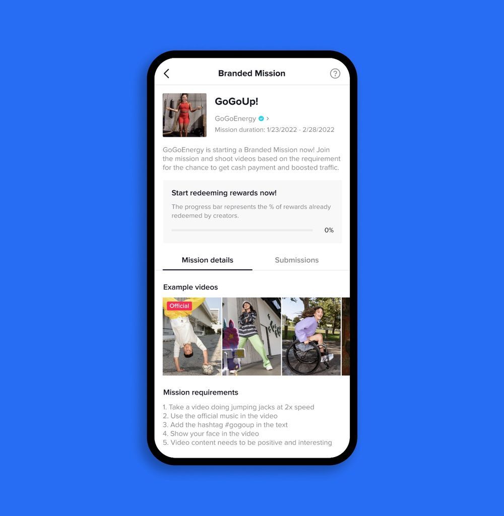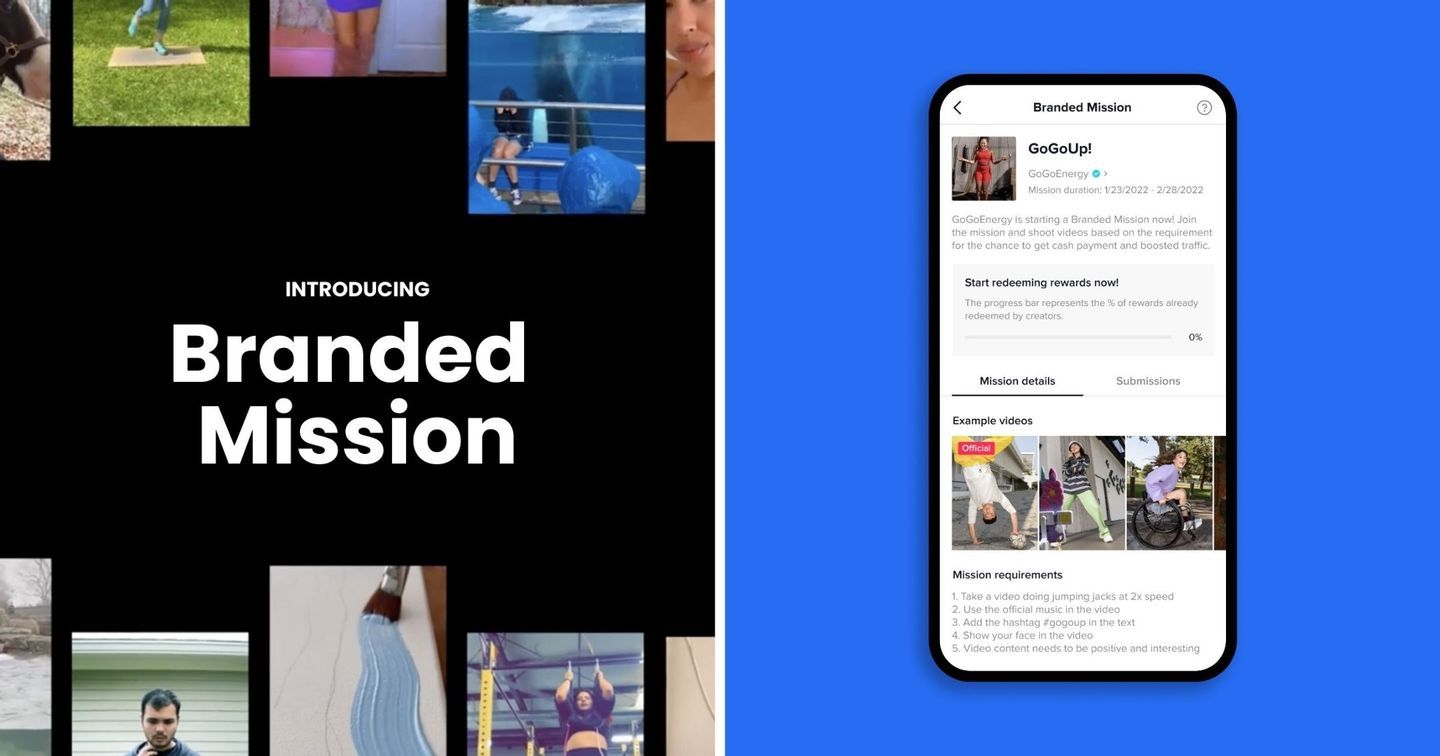 Branded Mission là hình thức tương tác hai chiều mới mẻ giữa thương hiệu và nhà sáng tạo, cho phép cộng đồng có thể cùng tham gia sáng tạo nội dung quảng cáo, trong khi thương hiệu có thể tìm ra các nhà sáng tạo mới nổi trên nền tảng TikTok.
