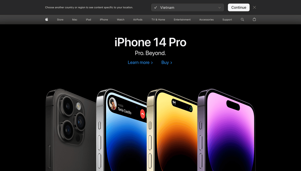 Apple luôn trung thành với thủ thuật copywriting ngắn gọn, dễ hiểu và bắt đầu bằng một động từ thúc đẩy hành động như "Learn" và "Buy"