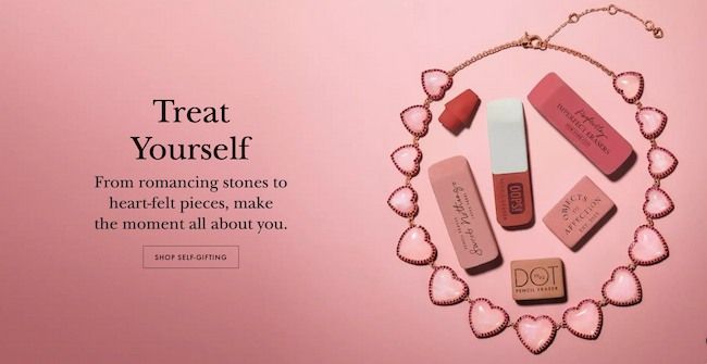 Trên website của KateSpade, thương hiệu đã thể hiện nút CTA với nội dung “Shop Self-gifting” (tạm dịch: Tự mua quà tặng bản thân). Khác với những nội dung thường thấy trong ngày lễ Valentine khi mà người dùng thường được khuyến khích mua quà tặng cho “nửa kia”, nội dung độc đáo trên nút CTA đã làm cho thương hiệu thời trang này trở nên nổi bật hơn so với đối thủ cạnh tranh. Đồng thời, Kate Spade cũng thành công trong việc thu hút và đánh trúng tâm lý của nhóm đối tượng cụ thể thường bị “lãng quên” trong ngày lễ này và khuyến khích họ đối xử tốt với chính mình.